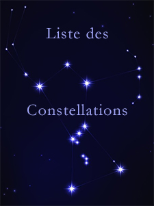 And - Andromeda - Andromède aql - Aquila - L'aigle Aqr - Aquarius- Le Verseau Ari - Aries - Le Bélier Aur - Auriga - Le Cocher Boo - Bootes - Le Bouvier Cam - Cameleopardalis - La Girafe Cap - Capricornus - Le Capricorne Cas - Cassiopeia - Cassiopée Cep - Cepheus - Céphée Cet - Cetus - La Baleine Cma - Canis Major - Le Grand Chien Cmi - Canis Minor - Le Petit Chien Cnc - Cancer - Le Cancer